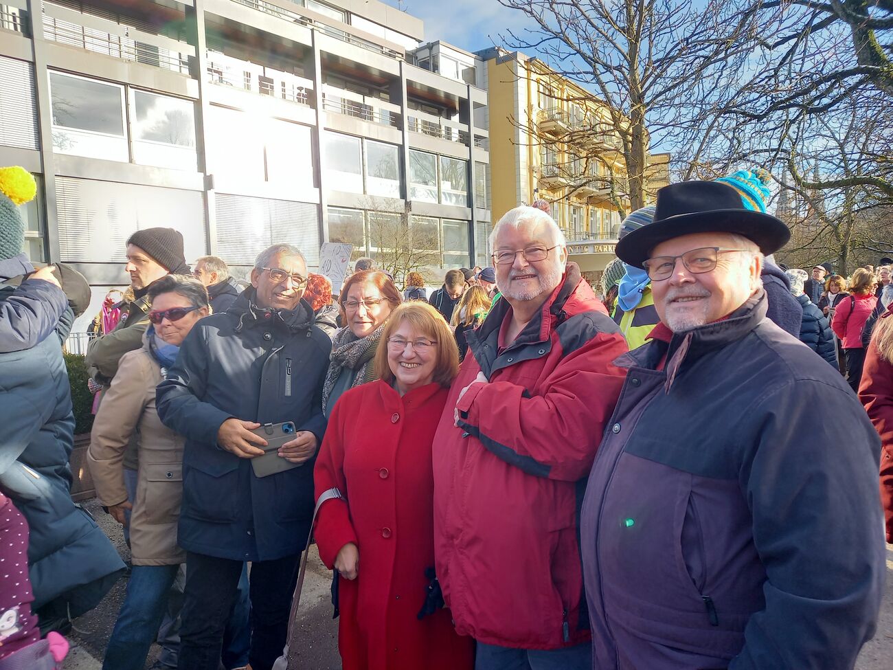 Mitglieder der SPD Rheinmünster und Unterstützer bei der Demo "Baden gegen Extremismus und für Demokratie" in Baden-Baden.
